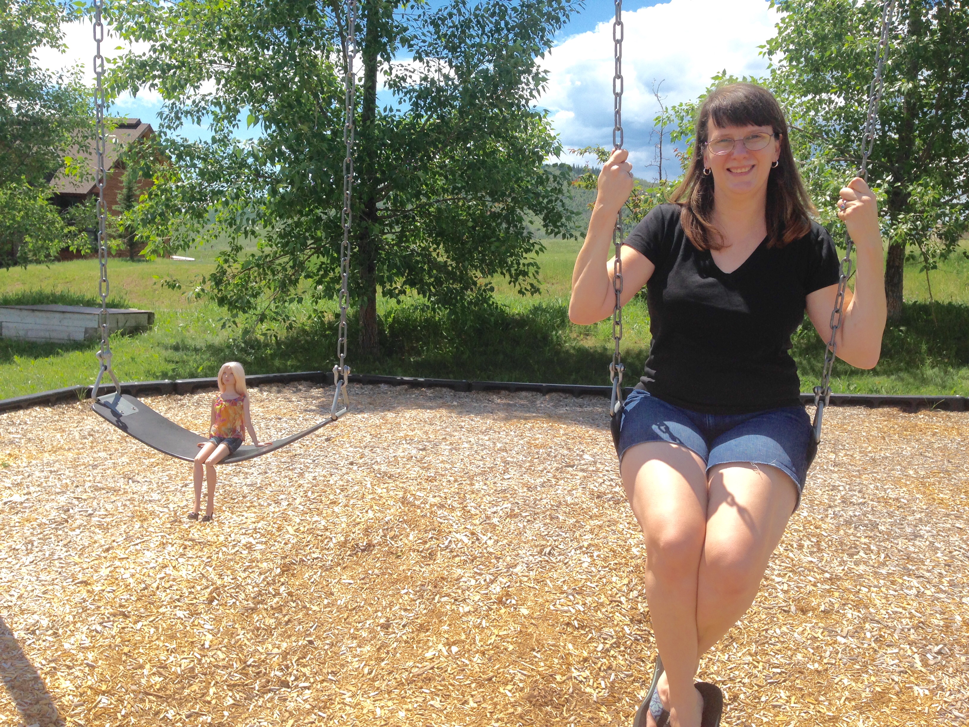 After our photo session was done, my niece and I headed for a playground, where our dolls joined us on the swings. It will be difficult to leave the crisp mountain air for Florida’s heat and humidity when we return home in a couple days.